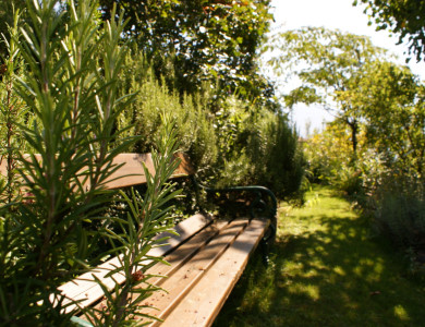 Wir hatten 1989 die Möglichkeit eine Tiefgarage und einen zweiten Teil des Hotels bauen. Wir waren froh endlich keine Autos mehr vor dem Haus zu haben und da wir nicht auf einem Erdhaufen sitzen bleiben wollten, haben wir beschlossen Platz, Zeit, Geld in einen Hotelgarten zu investieren. Ich war zwar damals schon ziemlich belesen, war mit der Gestaltung aber tatsächlich ein wenig überfordert, deshalb haben wir uns für die Gestaltung an eine Fachperson gewandt. Tatsächlich sind Gärten aber etwas sehr Persönliches und gerade die Gestaltung ist etwas sehr Schönes, wo man sich individuell austoben kann.